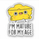 I'm Mature For My Age Funny Cheese Pun features a cute wedge of cheese looking really cool as he declares he's mature for his age. Perfect pun gift for family and friends who love cute cheese puns.