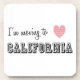 "I'm Moving To California" fun, retro graphic. Vintage postcard styling.