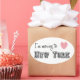 "I'm Moving To New York" fun, retro graphic. Vintage postcard styling.