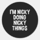 I'm Nicky Doing Nicky Things Funny Saying , Small, Classic Round Sticker