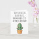 I was so glad to find this card - it was exactly right for the occasion and right for the person I sent it to ! Funny and clever design by Le Grand Art. Printing and overall quality of the card was excellent. A quality product