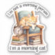 Embrace your inner feline with our 'I'm Not A Morning Person. I'm a Morning Cat' sticker! This whimsical artwork is perfect for those who prefer tranquil mornings over the early hustle. It features a cute cat cosily sleeping on a pile of books with an alarm clock nearby. It is a playful and charming way to showcase your love for cats and leisurely mornings.