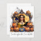 A cute witch with wings and a blank stare, holding her loyal black cat. They are framed by vibrant orange pumpkins, adding a touch of autumn charm to the composition. The card exudes a playful and cool vibe, perfectly encapsulated by the quote, "I'm not a regular witch, I'm a cool witch," written below the image.