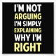I'm not arguing...I'm simply explaining why I'm right! Perfect for those occasions when your rational explanation is being misconstrued as argumentative. Which is probably all the time.