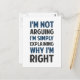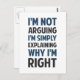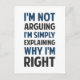 I'm not arguing...I'm simply explaining why I'm right! Perfect for those occasions when your rational explanation is being misconstrued as argumentative. Which is probably all the time.