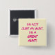 "I'm not just an Aunt, I'm a GREAT AUNT!" on a button. In pink.