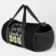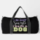 This fun black duffle bag features the playful and relatable phrase "I'M NOT Single I HAVE A DOG." The vibrant purple, pink, and lime green distressed text adds a stylish touch. Perfect for dog lovers who know their furry friend provides all the companionship they need! Edit colour of the bag caps and body in the Design tool to your favored colours.