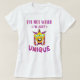 Funny design with a cute weird creature and the saying “I'm not weird I'm just unique”. A perfect match for kids and for adults.