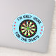 Funny colourful sticker for darts players and fans, with the words I'm only here for the darts, and a big dartboard graphic.