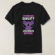 I give wanted to give this a 4 instead of a 5 because these Basic DARK T0shirts run unexpectedly SLIM or Narrow. Which is great if you do not have a potbelly, but I have a paunch. It isn't the shirt's fault that I've got a beer belly. The design and shirt itself is a quality cotton shirt. The color is more of a deep purple, but still a very pretty color. The Basic DARK T-shirts run a bit SLIMMER than the Basic Ts. The neck is a fraction narrower (or seems to be narrower) also. I'm a paunchy middle-aged woman and my neck is 12 inches (31cm) thick and the neckline fell about the same as in the photo of the man, and I had the desire to tug it a bit. So if you're a thick necked man or like loose shirts, be aware these are slimmer shirts. Once I get rid of my lockdown paunch it'll look great. The shirt washed well in cold water with no apparent bleeding. We don't have a dryer, so it hung dry. Did not shrink. Love the colors and the design. The design looks smaller on my shirt than it does on the model on-line. But still, it looks good on the shirt. The printing looks as it does on the model, just the size seems fractionally smaller. Washed garment in cold water, hung dry and design appeared unaffected.