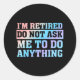 I'm Retired Do not ask me to do anything Classic Round Sticker