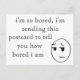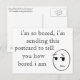 Bored? Need to announce it to friends and family? Then this postcard is just for you! Postcard reads, "i'm so bored, i'm sending this postcard to tell you how bored i am" Yes, now you can truly advertise your boredom! Inspired by a friend :-) Original design by Sunny. Copyright 2013
