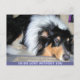 POSTCARD. MISSING YOU.. WISH YOU WERE HERE. TRI-COLOR ROUGH COLLIE GIVES A SOMBER POSE.