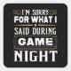 Perfect for any board gaming fan! Every boardgamer knows game night can get intense. Get your apologies ready beforehand!