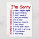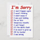 OK, so you did something wrong or said something stupid and you need to apologise. You have to say you're sorry and sometimes that's tough. We make it easier. This card has 10 great excuses and promises that guarantees forgiveness…and you may even get a smile!