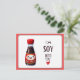 A cute and playful postcard featuring a smiling soy sauce bottle with the pun "I'm Soy Into You." Perfect for sending a sweet and quirky message to someone special.
