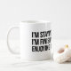 I'm staying. Finishing my coffee. Enjoying my coffee. This is printed full size on the cup so no one can miss it!