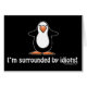I'm surrounded by idiots! Funny and sarcastic insult with a penguin image on our many different style and coloured T-Shirts & products.