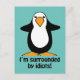 I'm surrounded by idiots! Funny and sarcastic insult with a black and white penguin with orange feet and beak graphic with a light teal / green blue background colour that you can customise.
