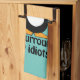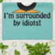 I'm surrounded by idiots! Funny and sarcastic insult with a black and white penguin with orange feet and beak graphic with a turquoise blue/green background cyan colour. Fully customisable.