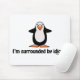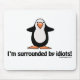 I'm surrounded by idiots! Funny and sarcastic insult with a penguin image on our many different style and coloured T-Shirts & products.