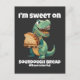 The text on the design says I'm sweet on sourdough With the hash tag Rawrnderful. The T-Rex is holding a slice of sourdough bread on a board.
