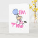 A stick figure girl in a pink dress and party hat with a balloon and pink text that reads "I'm Two" on 2nd birthday T-shirts, bodysuits, cards, stickers, tote bags, magnets, and more.