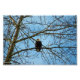 A photograph of a Bald Eagle perched in a tree, with a stern look, watching what is happening below the tree branches.