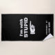 I'm with stupid funny beach towel for couples. Humourous beach towels with fun quote and pointing sign. Personalised gift idea for him and her. Unique gift ideas for men and women. Large size for beach or pool. Create your own extra large towels for married couple, best friends, retiree, retired person, pensioner, family, husband and wife, co worker, colleague, boss, employee, mum, dad, sister, brother, aunt, uncle, grandpa, grandma, manager, coach, office worker, partner, son, daughter, vacationer, couple, newly weds, newlyweds, bride and groom, mr and mrs, honeymooners etc. Fun modern typography template with hand and finger pointing to each other . Personalise with his or her name at the bottom. Black and white or custom background colour. Joke design.