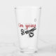This fun glass lets your partner know that, "I'm yours NO REFUNDS!". There's red script text that reads "I'm yours". In a playful, black, bold text are the words, NO REFUNDS! This design also has two black paint splattered hearts. On the back there's an area that can be customised.