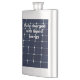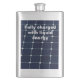 Closeup view of a solar power panel to generate ecologically clean and renewable energy to feed street lamps and other devices. Deep blue background and a white grid. Funny customisable hip flask. You can change or delete the template text Fully charged with liquid energy.