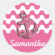 Image of Glitter Anchor Monogogram pink and white Classic Round Sticker