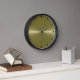 The size of the clock is dramatic and the abstract alcohol ink design is soothing and intricate at the same time. I chose the black frame that adds pop to the blue and gold design. The gold printing would be better in a slightly darker or larger font. I love it and I’m looking for just the right place in ny new apartment. I would recommend this clock for a personal gift or a present. I feel that the quality is excellent for the money! I’m a bit of a clock nut so I’m pretty particular about my purchases. The clock is larger in diameter than many if the clocks I have, so it stands out very well. I think a slightly darker printing color and a moderately larger size would best suit a professional decor or add more impact in a work place item.