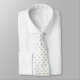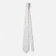 "Image shows two views of a white tie with a repeating geometric pattern in red and blue. The top view displays the front, while the bottom shows the back."