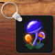 A fun glowing orange and blue mushroom design for your keychain.