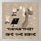 It's Santa, a bunny, the tooth fairy, and a bible with the words "Things that are the same."