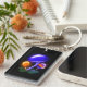 A fun glowing orange and blue mushroom design for your keychain.