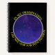 A sketch book explaining that imagination does not stop for punctuation in finishing a creative product, but some discipline must be used. The front of the sketch book has a picture of the galaxy surrounded by the first lines of an original poem, which is written on the back.