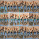 A group of impalas drinking at a waterhole in Hwange National Park, Zimbabwe