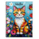 Impasto Cat, Flowers & Butterfly Personalized Notebook
