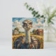 A cute thinking about you blank card for a friend or family member with an impasto close up of an ostrich on a ranch.