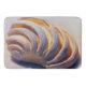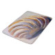 Simultaneously modern and ancient in appearance, the abstracted shape on this Bath Mat is an original photograph of a sea shell. The shell is a bivalve mollusc, a hard-shelled clam, called imperial venus, which averages in size about 1.5 inches. These shells are usually white but, in this photo, tinted in pastel blues, yellow and pinks.