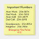This yellow magnet is perfect for children, babysitters, or anyone unfamiliar with the important phone numbers in your house. You can put in your own numbers of importance for your situation.