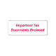 This self-inking stamp clearly marks documents with the message 'Important Tax Documents Enclosed.' Ideal for accountants, tax professionals, and businesses, this stamp ensures that crucial paperwork is easily identified and organised. The bold, red text is highly visible, making it perfect for office use during tax season or any time of the year.