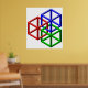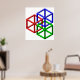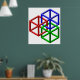 This poster features a vector graphic of optical illusion impossible cubes, in blue, red, and green. The background colour can be customised if desired.