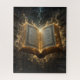 fantasy book puzzle, magic object, floating book, impossible illusion, glowing runes, fantasy puzzle, mysterious