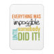 Multicolor text design reads "Everything Was Impossible Until Somebody Did It!" on inspirational T-shirts, buttons, cards, mugs, magnets, key chains, and other items great for teachers, coaches, parents, and anyone who inspires!