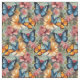 Blue and orange butterflies and flowers in an impressionist style makes a beautiful fabric that's perfect for clothing and quilts.