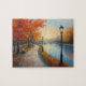 Impressionist Autumn River Walk Lamp Posts Jigsaw Puzzle