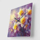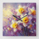 Impressionist Daffodil Floral Purple Yellow Art Square Wall Clock